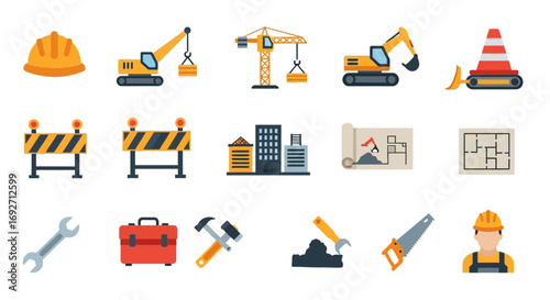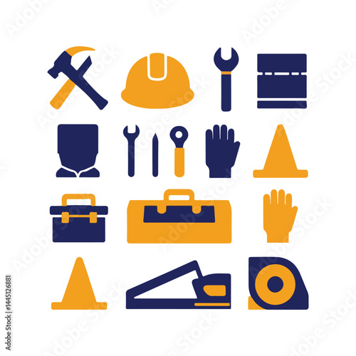 Home repair tool kit. Vector flat isometric repair construction work tool and equipment icon set. Toolbox, hand drill, hammer, screwdriver, measuring tape, knife, paint roller, paintbrush, ladder etc.