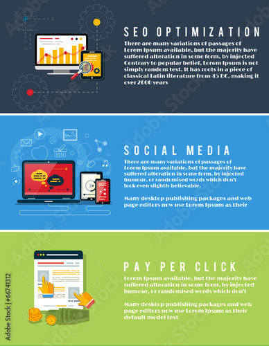 Vector flat isometric horizontal analytics banner set. Data management, Mobile analytics, Data optimization concept design elements.