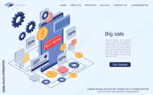 Vector flat isometric horizontal analytics banner set. Data management, Mobile analytics, Data optimization concept design elements.