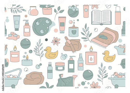 Vector seamless pattern with decorative shaving and grooming symbols, icons. Barbershop background, wrapping paper texture thin line art flat style design.