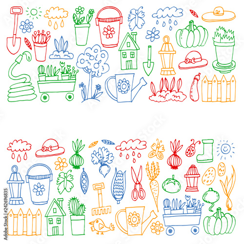 Vector seamless pattern with decorative happy birthday and wedding symbols, icons. Celebration background, wrapping paper texture thin line art flat style design.