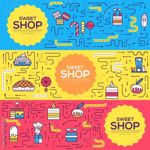 Vector set of horizontal banners with Fueling, Solar energy and Service line art flat style design elements, web templates.