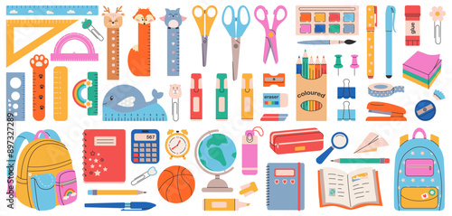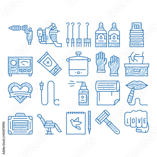 Vector seamless pattern with decorative painting symbols, icons. Art background, wrapping paper texture thin line art flat style design.