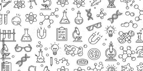 Vector seamless pattern with decorative spa service symbols, icons. Spa and beauty background, wrapping paper texture thin line art flat style design.