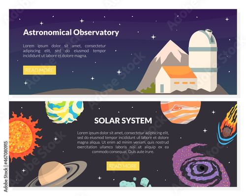 Vector set of horizontal banners with Journey, Summer rest and Summer line art flat style design elements, web templates.