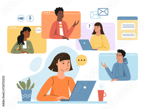 Vector flight attendant serving elderly couple passenger on air plane during aircraft travel illustration. Stewardess character working, hostess offers food drink background