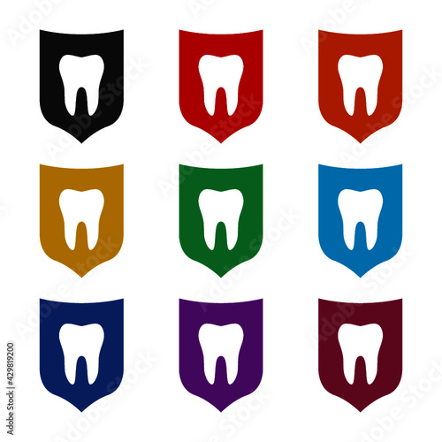 Healthy untreated tooth and dental caries or cavities icon set. Severity of tooth destruction.
