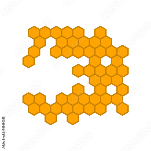 Vector honeycomb cell isometric illustration. Beeswax filled with honey and syrup drop. Beekeeping, product isolated on white