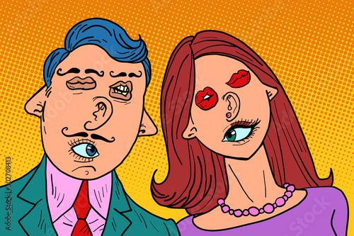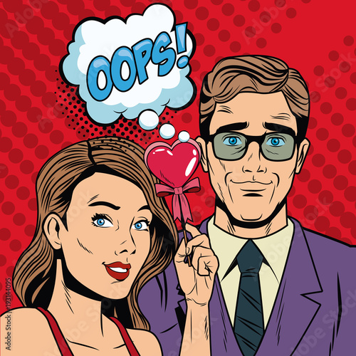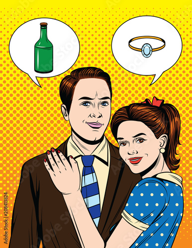 Vector illustration in pop art style. Woman and man talk to each other. Retro comic. Gossip and rumors talks.