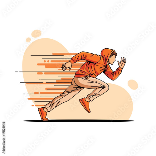 Vector illustration of american football player running with ball on field. Sport concept design element. Football uniform, helmet and protection. American football lettering.