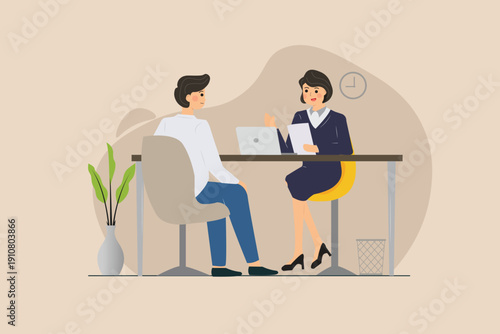 Vector illustration of Archaeological museum exposition in flat style. Visitor watching exhibition of ancient Egyptian artwork Nefertiti bust and stuffed camel.