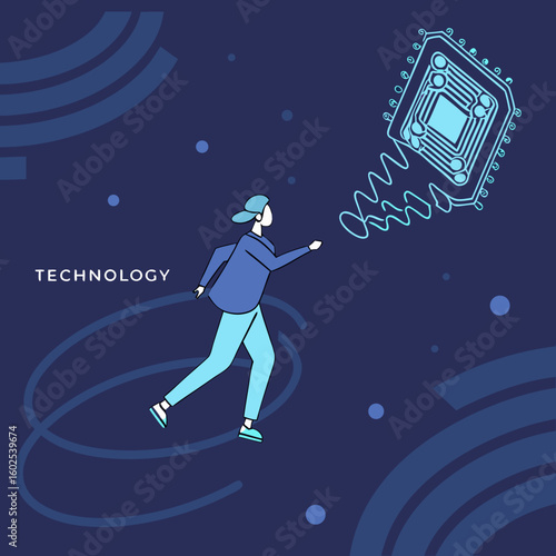 Vector illustration of astronaut in open space, planet Earth and the Moon. Space exploration concept design element in flat style.