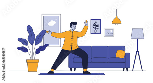 Vector illustration of disabled blind man with stick and guide dog waiting for green traffic light to cross street. Flat style design.