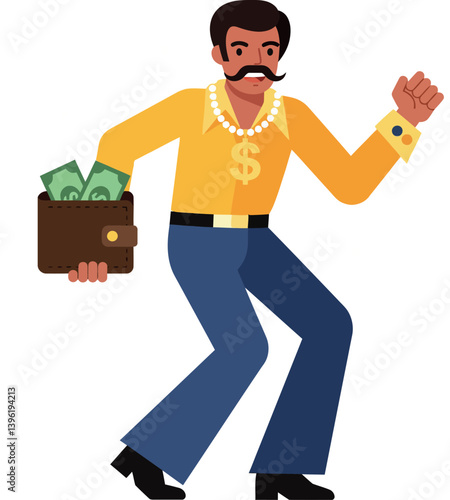 Vector illustration of rich business woman with a hundred dollar bill in retro pop art comic style.