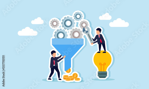 Vector illustration of businessmen picking dollars from money tree. Money plant. Business growth, financial success concept design element in flat style.