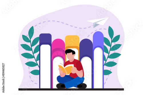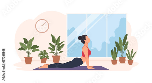 Vector illustration of cave people exposition in museum in flat style. Paleolithic primitive family, museum interior.