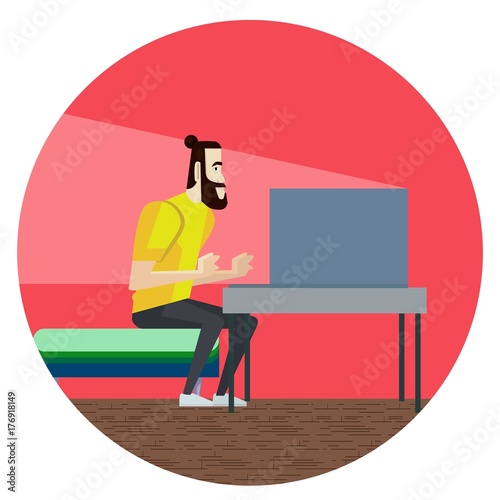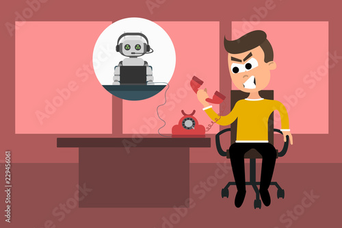 Vector illustration of coffee house design template with barista and visitor. Customer standing near bar counter. Coffee house interior in flat style.