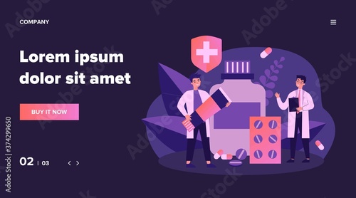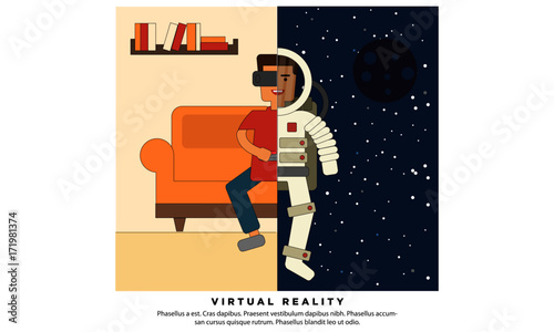Vector illustration of cosmonaut standing on surface of planet. Space explorer concept design element in flat style.