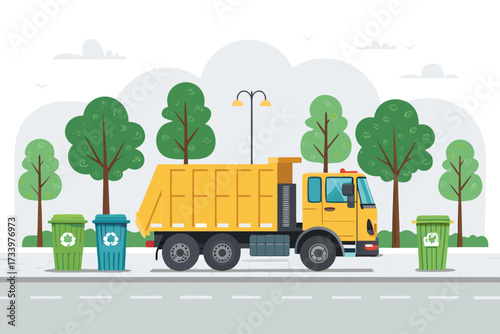 Vector illustration of delivery truck. Freight transportation, delivery service concept flat style design element.