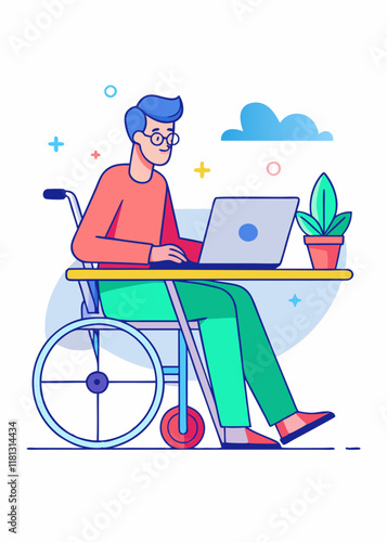 Vector illustration of disabled woman in wheelchair enjoying meeting with her friend young woman. Flat style design.