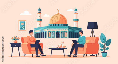 Vector illustration of father reading his child fairy tales at night. Bedtime stories. Family concept design element in flat style.
