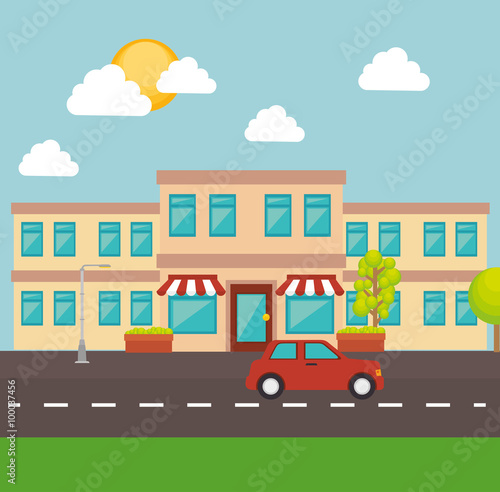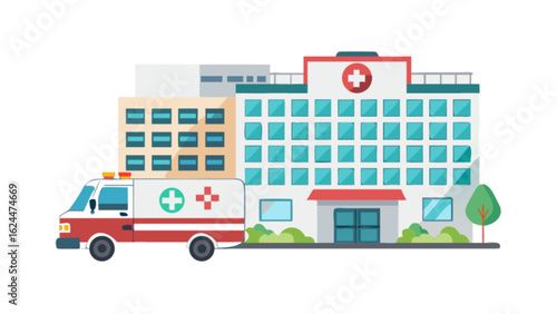 Vector illustration of Fire department in flat style. Fire service, running firefighters and fire truck. Red fire engine and firemen in uniform. Fire brigade. Resque service.