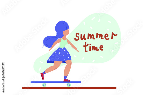 Vector illustration of girl making snow angel. Winter people activities concept design element in flat style.
