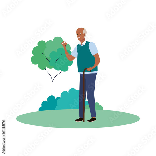 Vector illustration of grandfather with walking cane. Granddad flat style design element.
