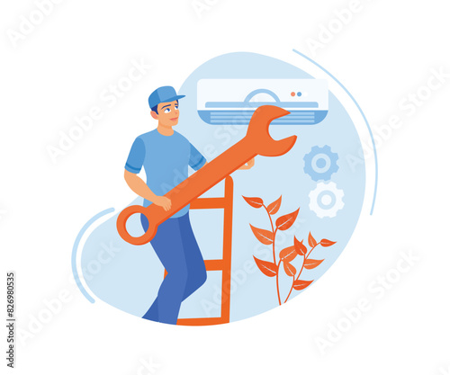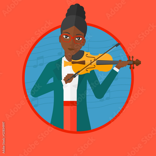 Vector illustration of musician young woman playing guitar. Guitar player with string musical instrument flat style design element.