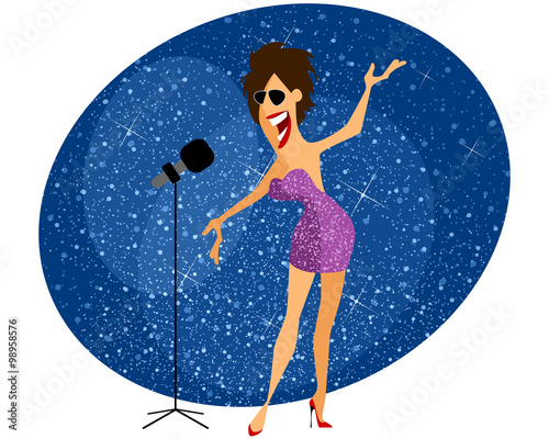 Vector illustration of smiling woman sitting on chair and holding scissors, combs and hair dryer. Hairdresser in retro pop art comic style.