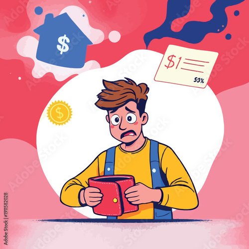 Vector illustration of happy businessman holding money bag with dollar sign. Business success, feelings and emotions concept in retro pop art comic style. Speech bubble.