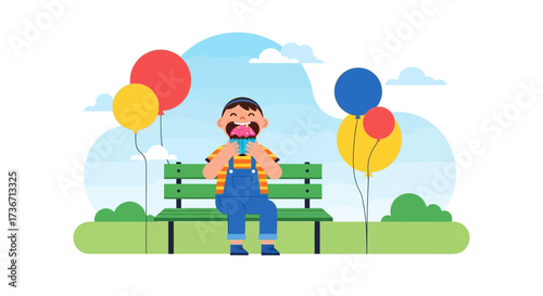 Vector illustration of father, mother holding hands and their daughter with cotton candy. Cartoon characters. Amusement park, recreation concept design element in flat style.