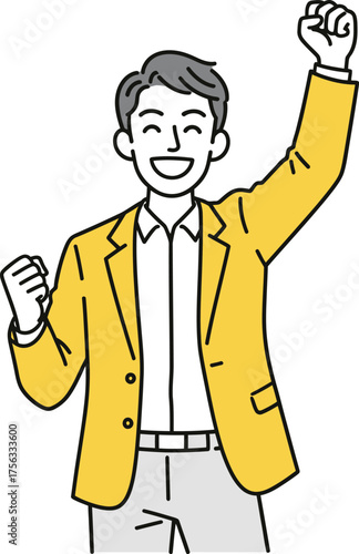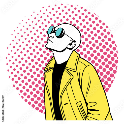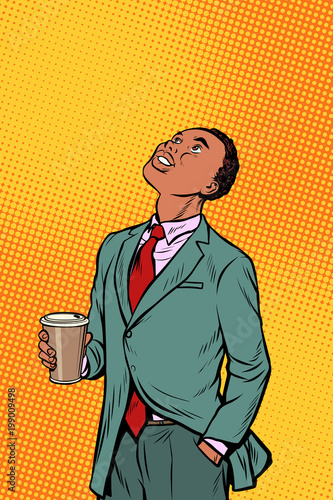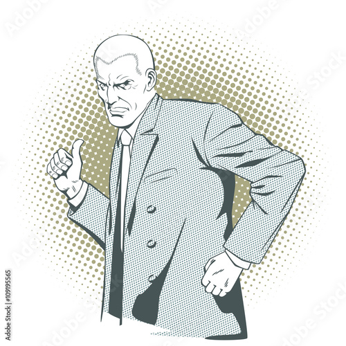 Vector illustration of man, businessman with thumb up hand sign in retro pop art comic style. Gesture of approval. Speech bubble.
