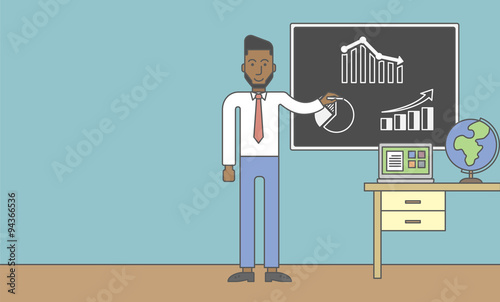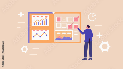 Vector illustration of postal worker standing next to shelves with parcels, cardboard boxes ready for dispatching. Packer concept design element in flat style.