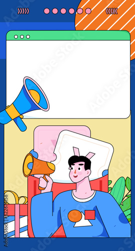 Vector illustration of Pierrot with picture frame and speech bubble. The man in the costume of Pierrot in retro pop art comic style.