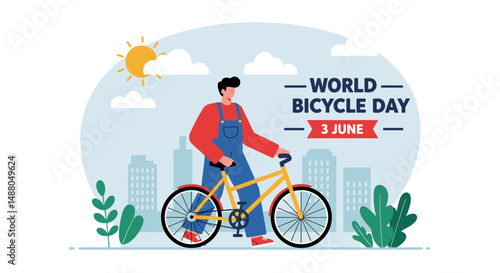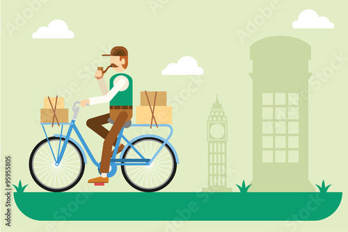 Vector illustration of policeman with city bicycle. Police inspector patrolling street design element in flat style.