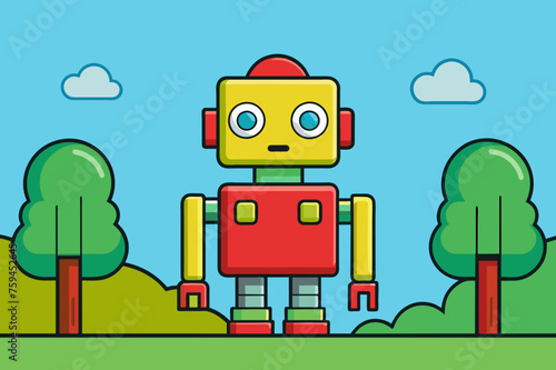 Vector illustration of robot courier. Technology concept design element, icon in flat style.