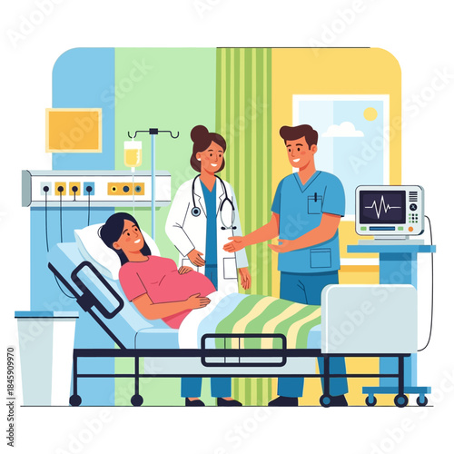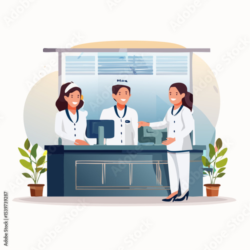 Vector illustration of scientists man and woman working at science lab. Laboratory interior, equipment and lab glassware. Chemistry education. Scientific research concept flat style design element.