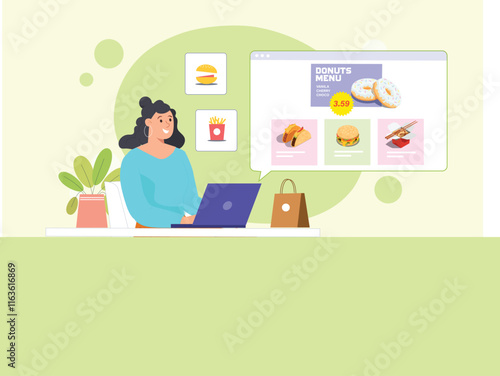 Vector illustration of young woman seamstress sewing on treadle sewing machine. Atelier, tailoring shop, fashion salon concept design element in flat style.