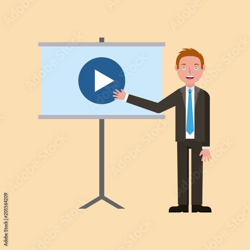 Vector illustration of security guard standing near bank safe. Bank security service concept design element in flat style