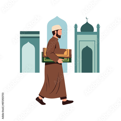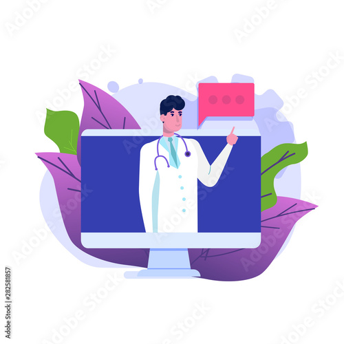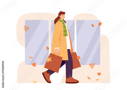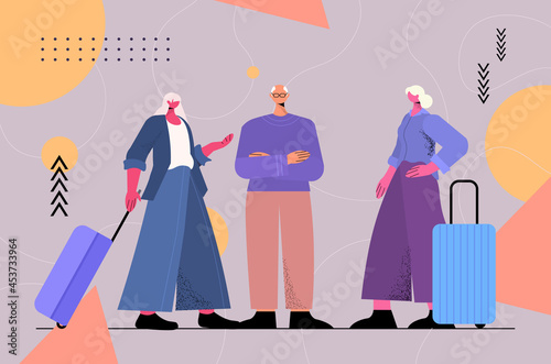 Smorgasbord concept vector illustration in flat style. Visitors man and woman standing near table with burgers, bakery and desserts. Restaurant interior.