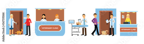 Vector illustration of students boy and girl at the university. Classroom interior. Lecture, seminar. Higher education concept design element in flat style.