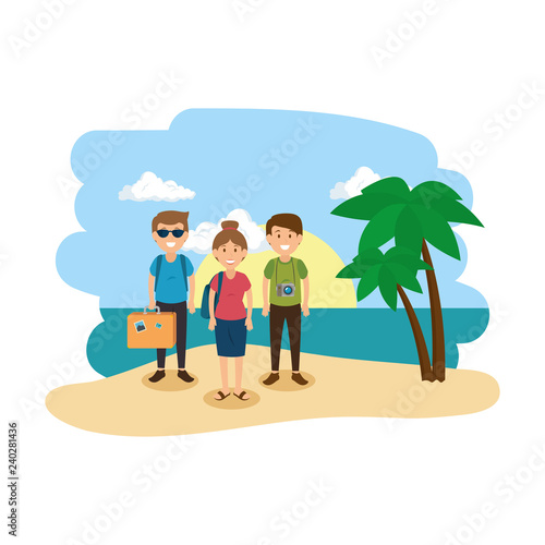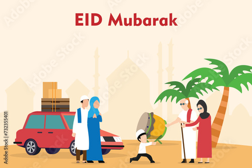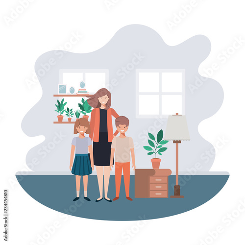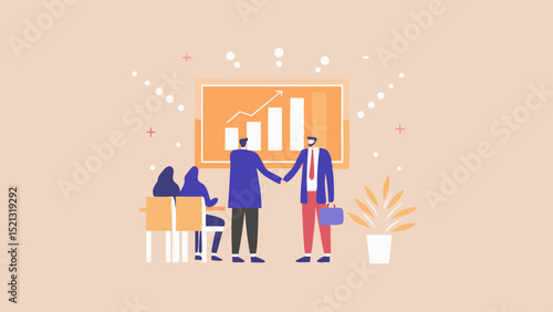 Vector illustration of stuffed deer in zoological museum. Visitors young man and woman watching exhibition of stuffed animals in zoo museum. Exposition room interior design element in flat style.