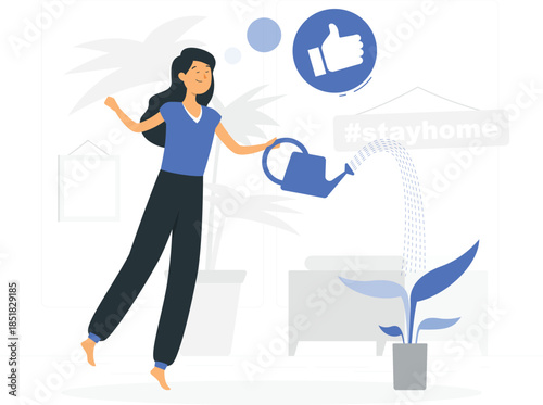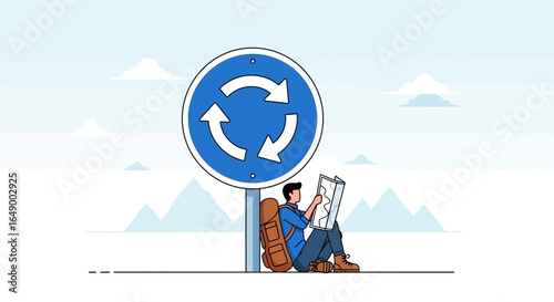 Vector illustration of forefinger pointing at successful businessman standing on the top of money stairs. He is holding cup in his hands. Business success concept design element in flat style