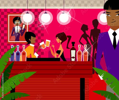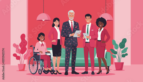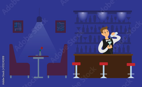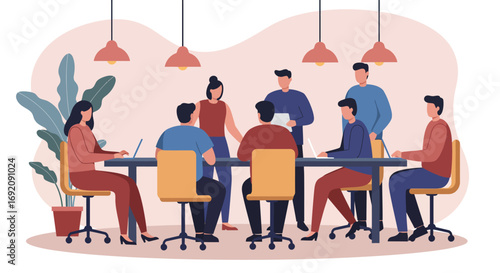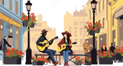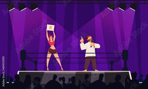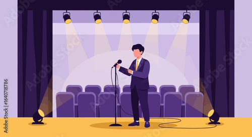 Vector illustration of symphony orchestra playing music on stage of concert hall. Conductor, violinist, bassist, trumpeter, flutist and audience flat style design elements.