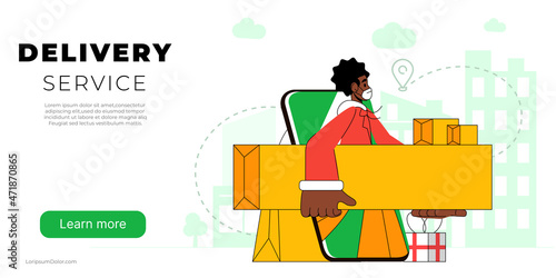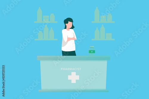 Vector illustration of volunteer young woman helping elderly man with food. Voluntary organizations services concept design element in flat style.