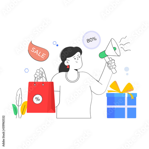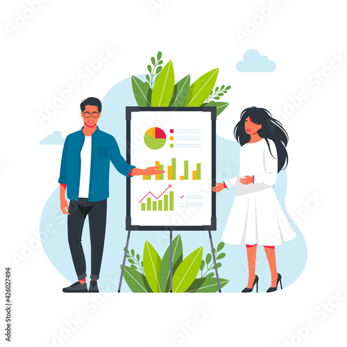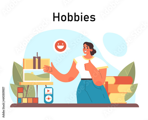 Physics research concept vector illustration in flat style. Physicist woman carrying out experiment. laboratory interior, glassware and equipment.