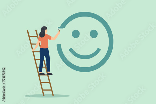 Vector illustration of woman painting wall. Painter profession, repairing a house concept design element in flat style.