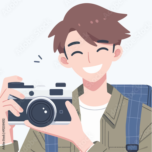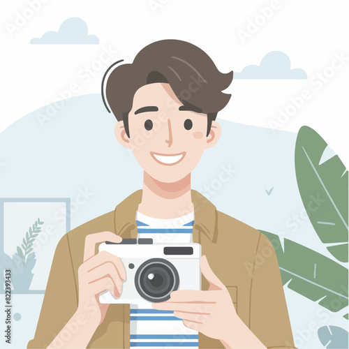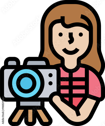 Vector illustration of young woman photographer taking photo, winking and showing OK hand sign in retro pop art comic style.