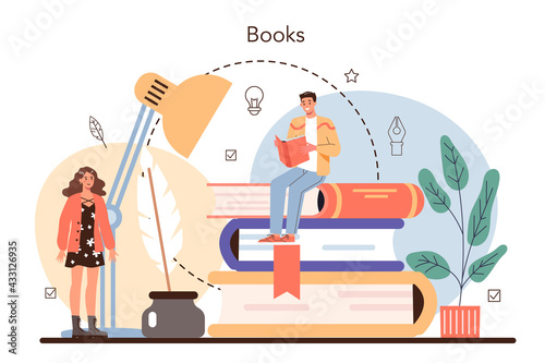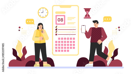Vector illustration of young man and woman skating at ice rink. Cartoon characters. Winter sports and activities concept design element in flat style.